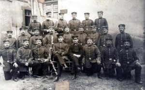 Przed Salą Bankową w Przemęcie kolejna grupa przybyłych z frontu naszych żołnierzy.