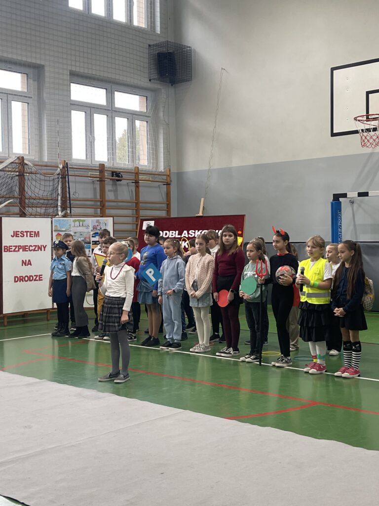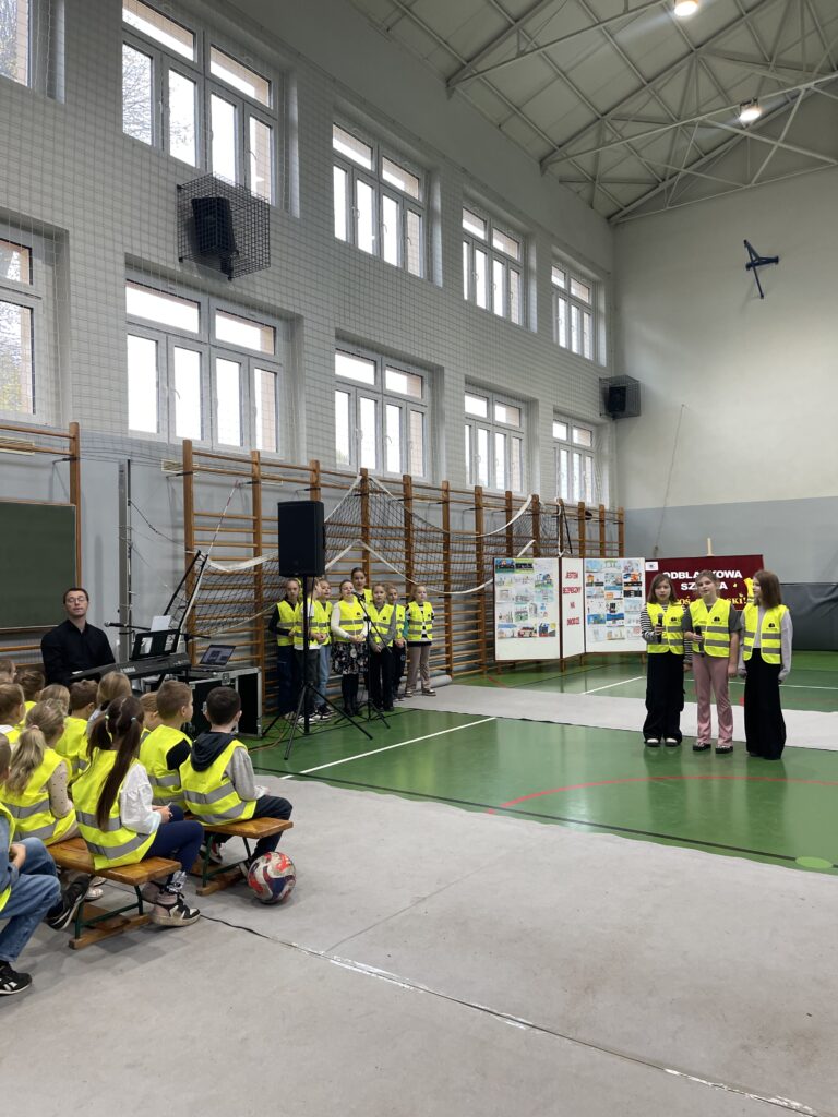 Uroczystość rozpoczęła się od występu uczniów klas trzecich w przedstawieniu pt. „Bądź bezpieczny”. Dzieci przypomniały swoim kolegom i koleżankom najważniejsze zasady, jakich należy przestrzegać, by być bezpiecznym na drodze. Następnie uczniowie klasy IV zaśpiewali piosenkę „Bezpieczeństwo ważna sprawa”, do której tekst oraz muzykę ułożył Pan Grzegorz. Na koniec wszyscy obejrzeli film pt. „Strażniczki Bezpiecznej Drogi”, w którym wystąpili uczniowie klasy III b.