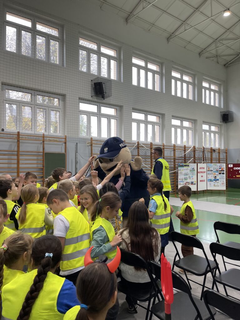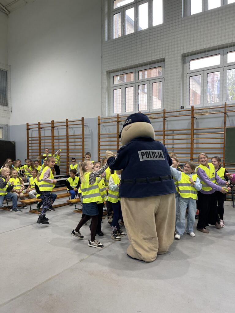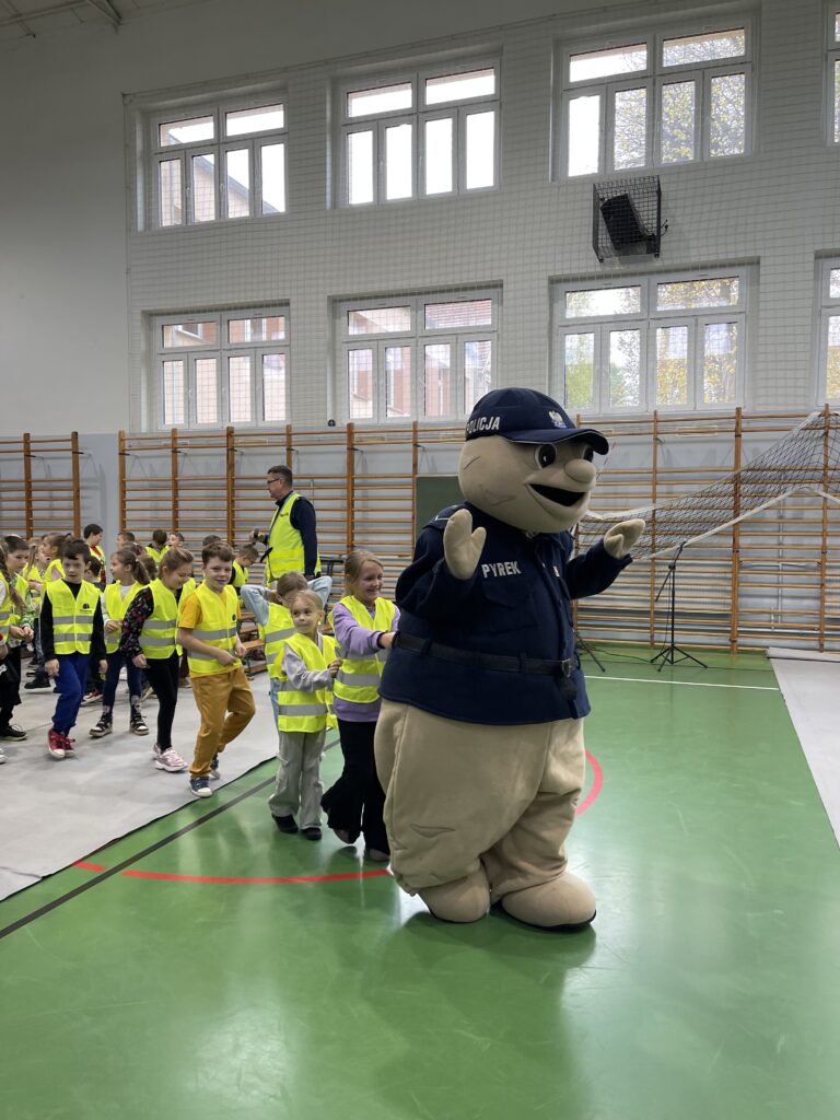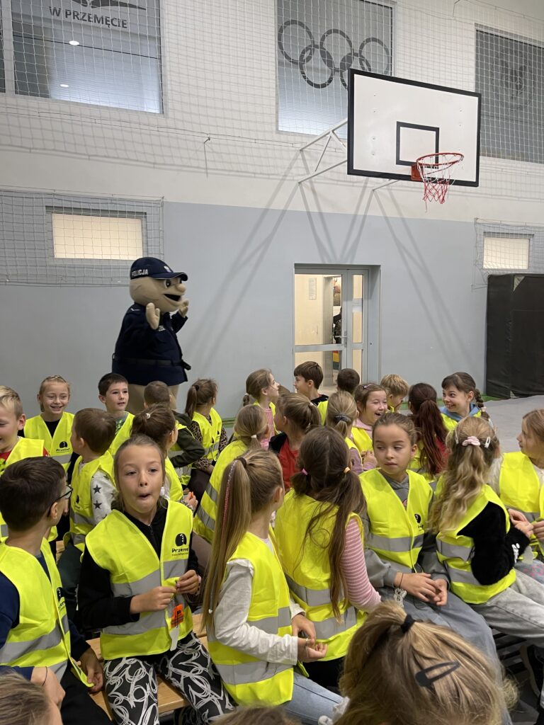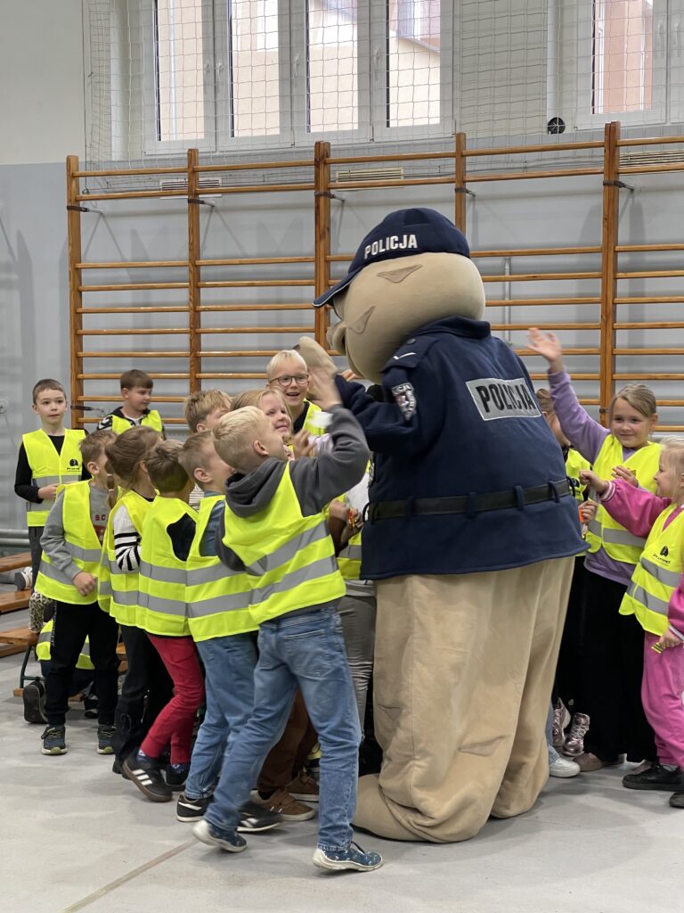 Na dzieci czekała jeszcze jedna niespodzianka – wizyta policyjnej maskotki – Pyrka. Wszyscy otrzymali tego dnia kamizelki oraz odblaski ufundowane przez Gminę Przemęt, KPP w Wolsztynie oraz Bank Spółdzielczy we Wschowie. Serdecznie dziękujemy!
